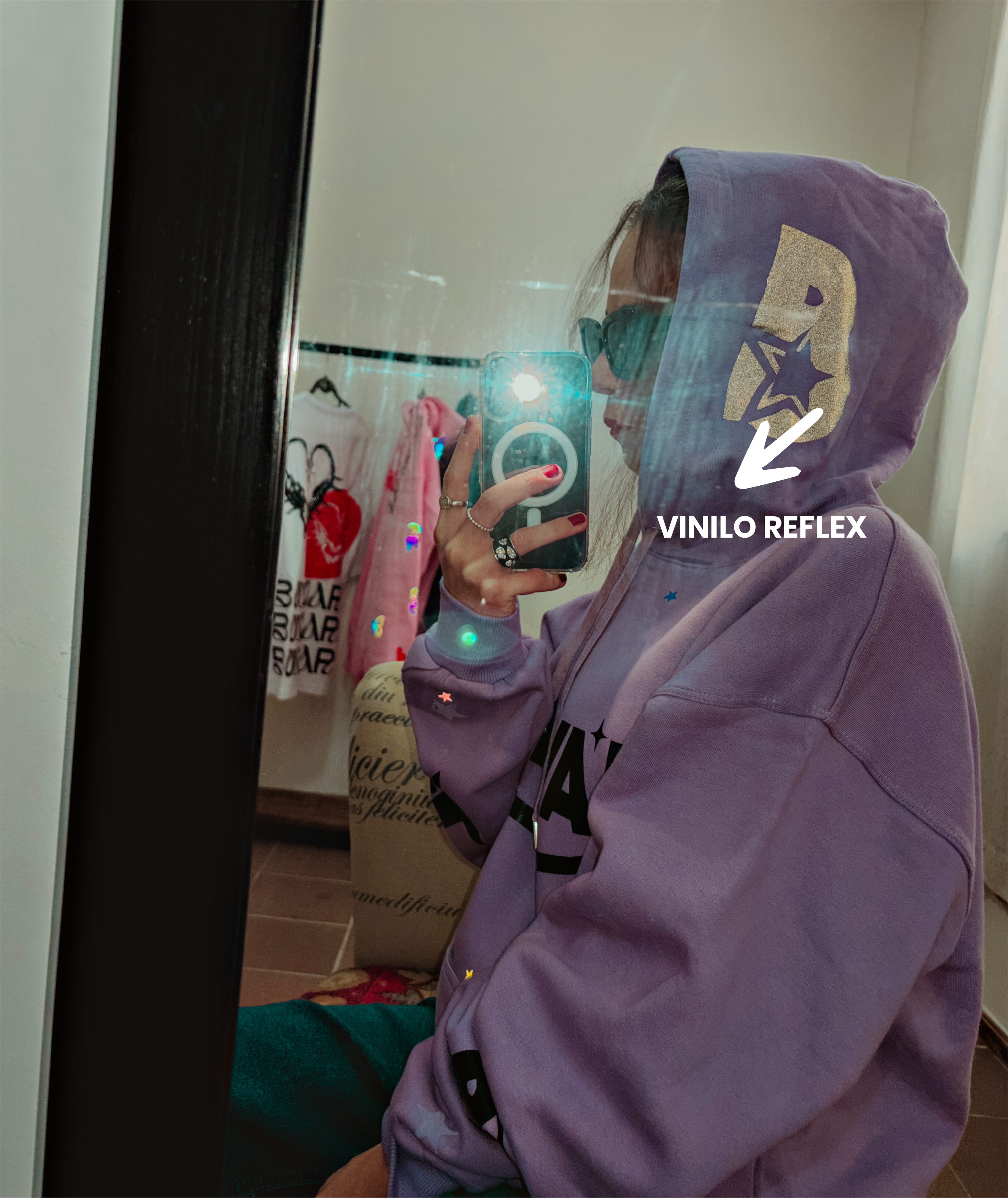 Vinilo reflex arcoiris y gris : Los vinilos brillan al ser reflejados con la luz del sol o del flash.