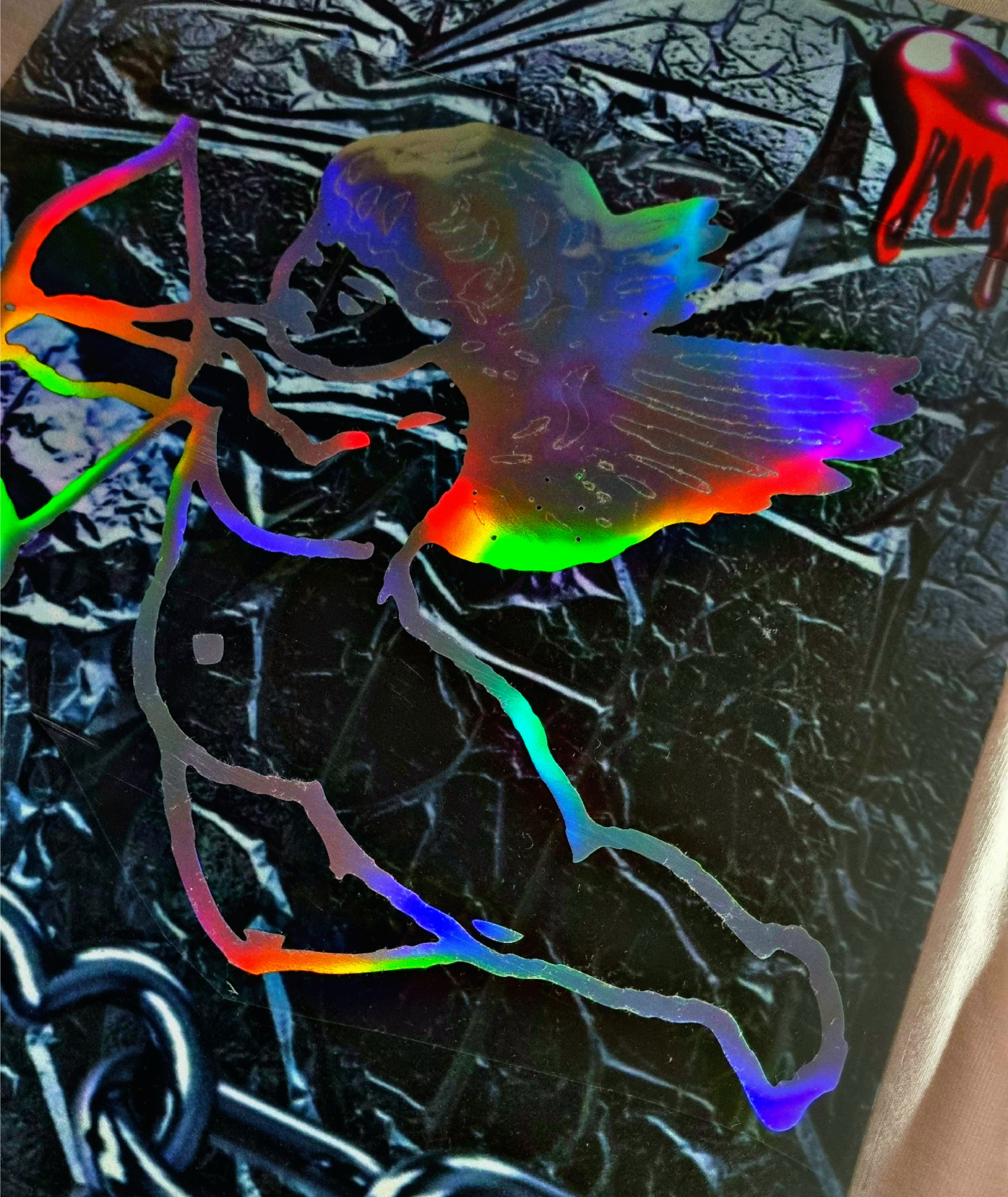 Vinilo tornasolado: Cambia su color según refleje la luz. Además lleva vinilo rojo, negro y rosa fluor.