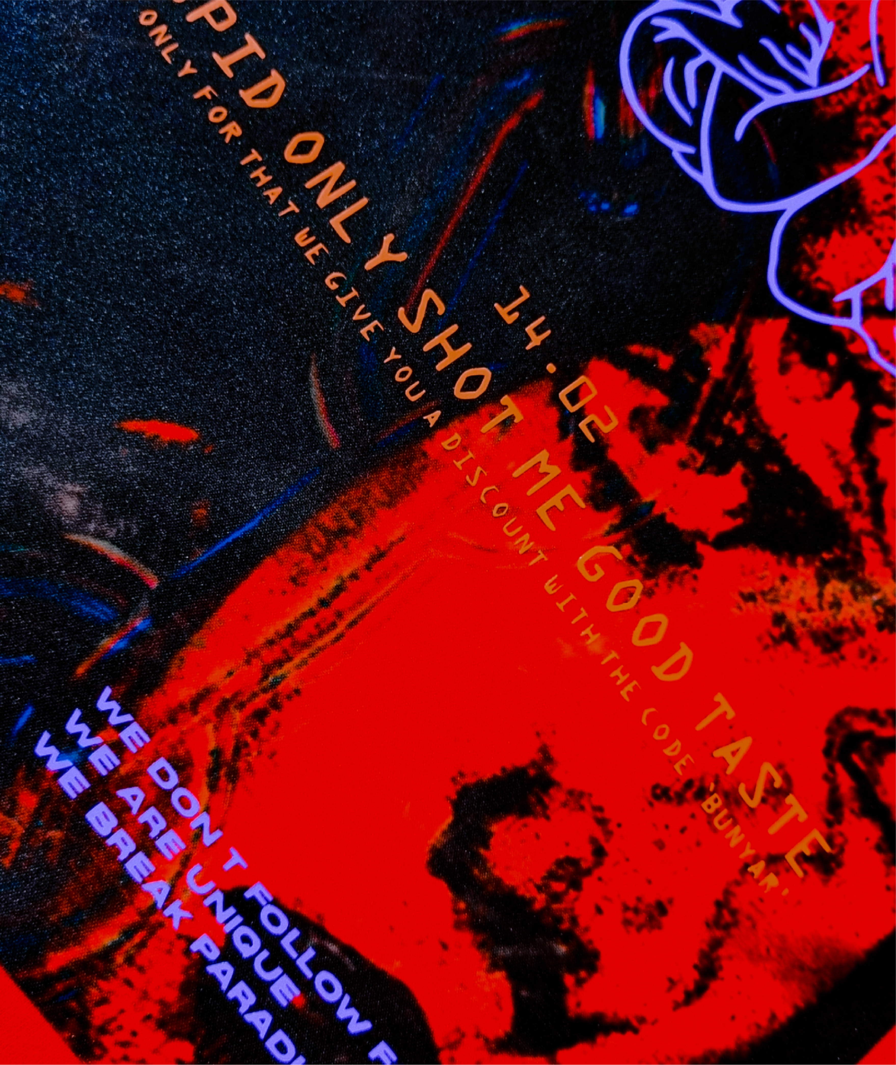 Cada diseño se estampa de manera manual, pieza por pieza, utiizando materiales importados para lograr un resultado único. LLeva vinilo violeta, naranja y bordo.